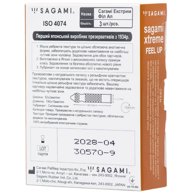 Латексные презервативы Сагами Xtreme FEEL UP – инновационные презервативы, разработанные специально для усиления удовлетворения женщины. Презерватив специально разработан и создан на основе пожеланий женской аудитории! Презервативы Sagami уникальное сочетание качества и сверхновых японских технологий! Идеальные презервативы для женского оргазма. Прозрачные, без запаха ультра тонкие, но при этом высокопрочные.