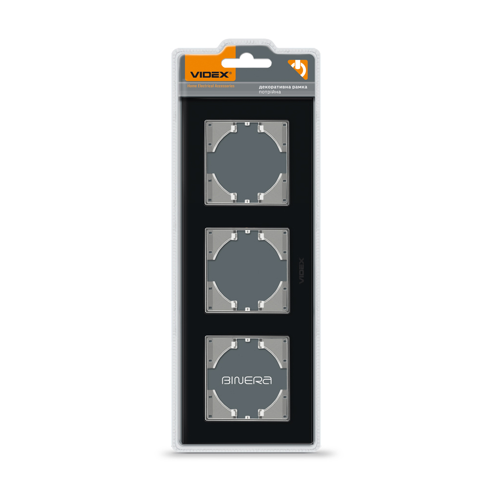 Рамка Videx BINERA чорне скло 3 поста (VF-BNFRG3H-B)
