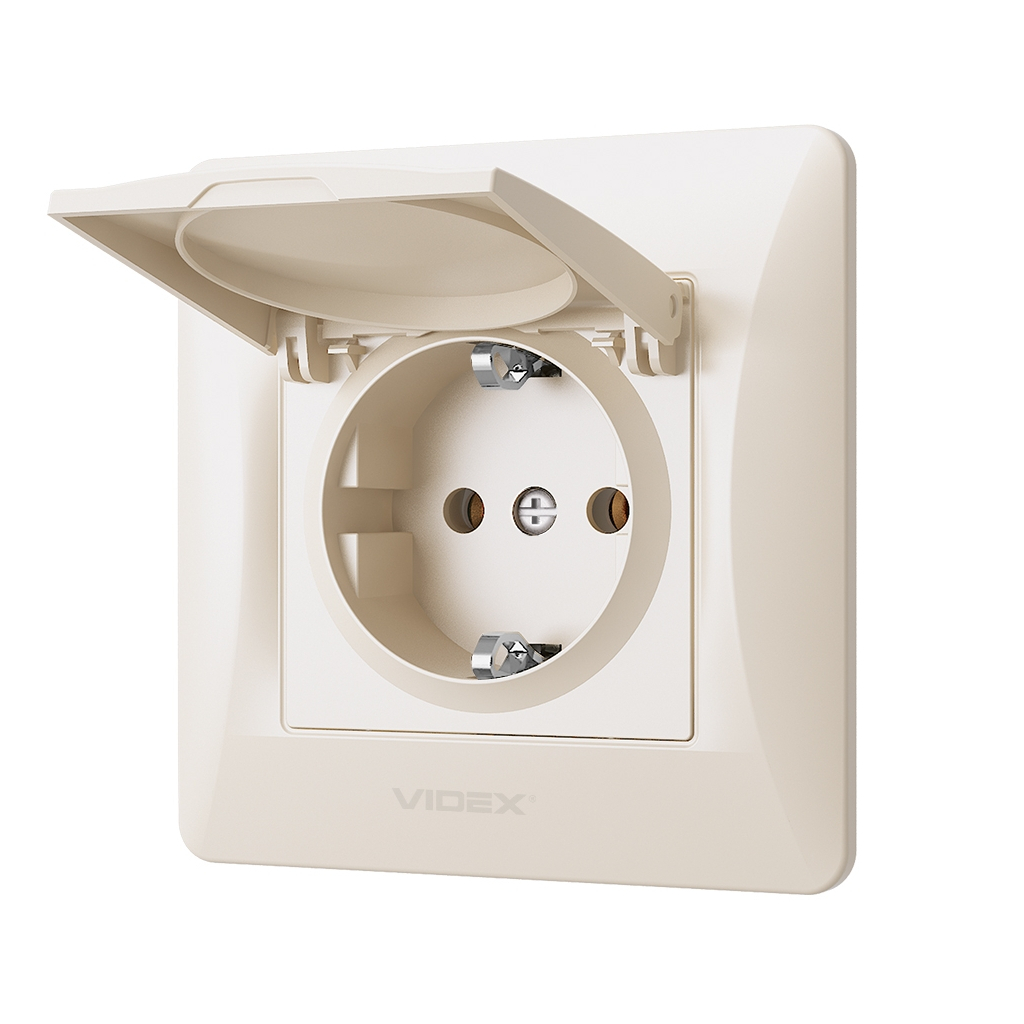 Розетка Videx BINERA 1ая із заземленням і кришкою крем (VF-BNSK1GС-CR)