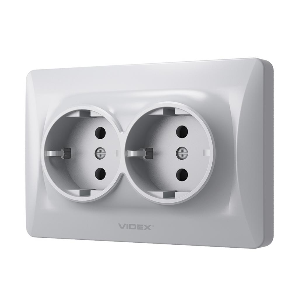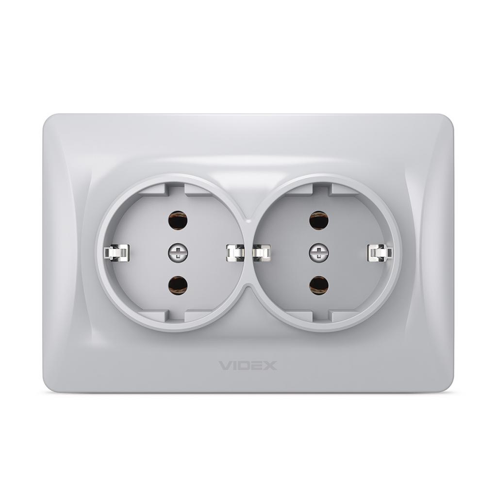 Розетка Videx BINERA 2ая с заземлением серебр (VF-BNSK2G-SS)