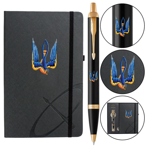 Ручка кулькова Parker IM 17 UKRAINE Black GT BP Тризуб-Ластівка + блокнот Parker + подар.упаковка GIFT24 (22032b24_T1230u)
