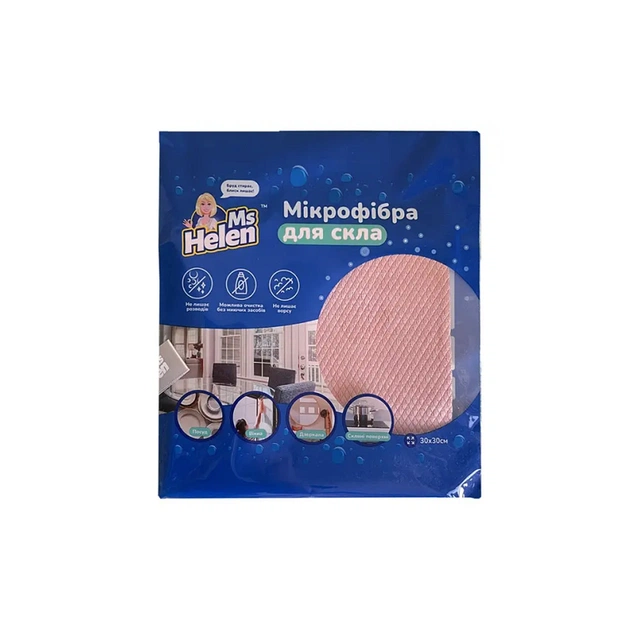 Серветки для прибирання Ms Helen Мікрофібра для скляних поверхонь Колір в асортименті 30 х 30 см 1 шт. (6901362557352)
