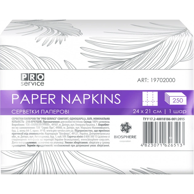 Салфетки столовые PRO service Comfort для диспенсеров однослойные 250 шт. (4823071626513)