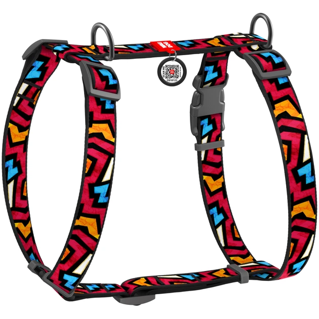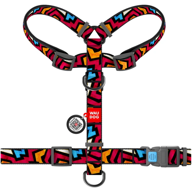 Шлей для собак WAUDOG Nylon с QR паспортом анатомическая H-образная "Граффити" L (5541)