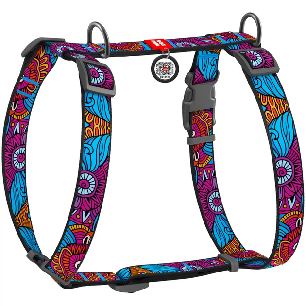Шлей для собак WAUDOG Nylon с QR паспортом анатомическая H-образная "Лето" L (5575)