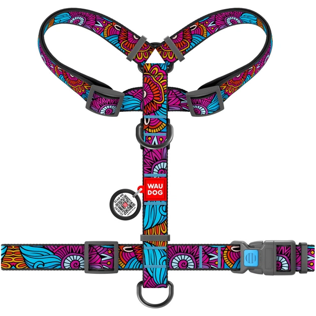 Шлей для собак WAUDOG Nylon с QR паспортом анатомическая H-образная "Лето" S (5616)