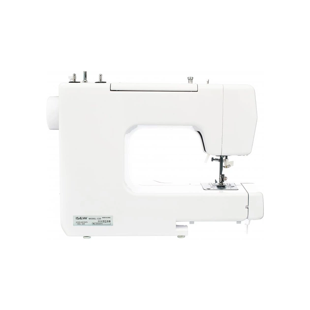 Швейная машина іSew C 25 электромеханического класса с вертикальной челночной системой и набором из 25 швейных операций, среди которых эластичные, оверлочные, потайные, рабочие и декоративные строчки, а также петлю в полуавтоматическом режиме. Стоит отметить, что производитель оснастил машину автоматическим нитевдевателем, яркой светодиодной подсветкой области шитья, системой быстрой смены лапки, рукавной консолью, обрезчиком нити и многими другими опциями для комфортного шитья. Усиленный транспортер ткани, внутренний металлический каркас, мощный двигатель — все это позволит не только профессионально шить, но и работать в технике пэчворк, квилтинг и скрапбукинг.
