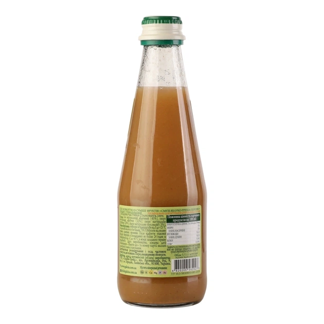 яблочный сок (45 %), грушевое пюре (25 %), яблочное пюре (20 %), персиковое пюре (10 %)