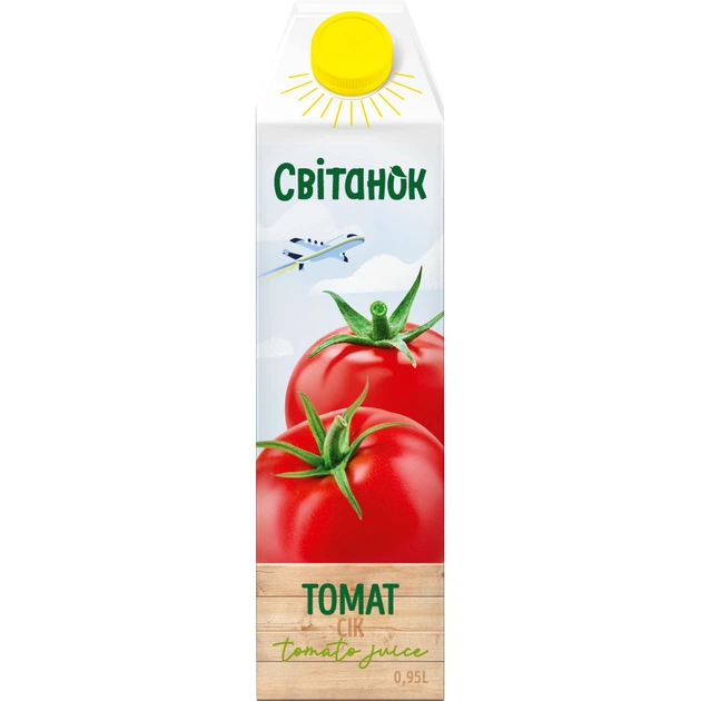 Сок Світанок Томатный с солью восстановленный стерилизованный гомогенизированный 950 мл (4820209563825)