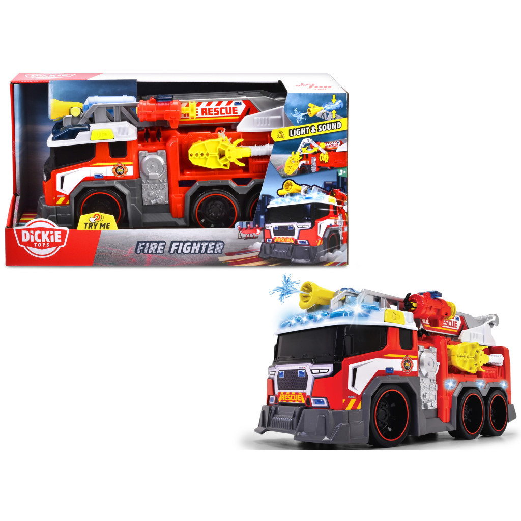 Почувствуй себя настоящим пожарным. С пожарной машиной "Борец с огнем" сделать это будет легко и интересно. Телескопическая лестница выдвигается и возвращается в стороны, что гарантирует попадание воды в нужном направлении. Изюминкой этой пожарной машины является подвижная водяная пушка на конце выдвижной лестницы, которая разбрызгивает воду, когда вы сжимаете небольшой резервуар. Также имеет, установленную сбоку пушку, которая помогает в экстренных случаях.