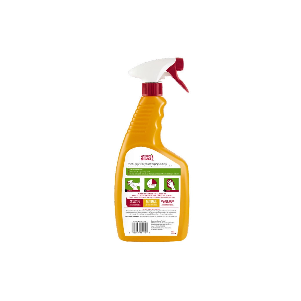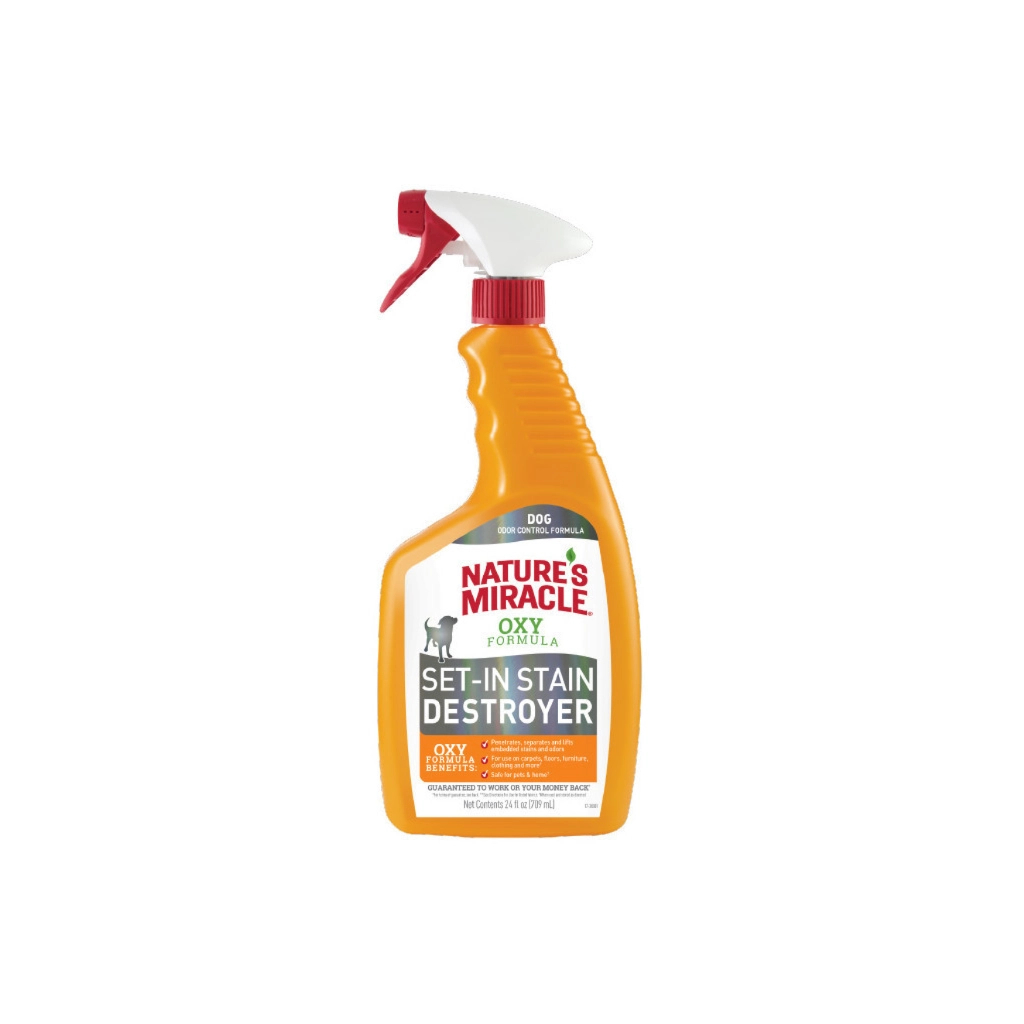 Истребитель пятен и запахов с усиленной формулой для собак Nature's Miracle достаточно эффективен, чтобы удалить самые стойкие загрязнения, оставленные собаками, в том числе въевшиеся. Специальная формула разработана для сложных органических пятен и запахов, в том числе от меток, грязи, травы, корма, рвоты, крови и т.д. Формула обогащена активным кислородом и биоэнзимами, что делает средство одним из лучших продуктов для уборки за собакой. Истребитель можно использовать для самых стойких пятен и запахов, оставленных на коврах, твердых поверхностях, тканях, переносках, спальных местах животного.