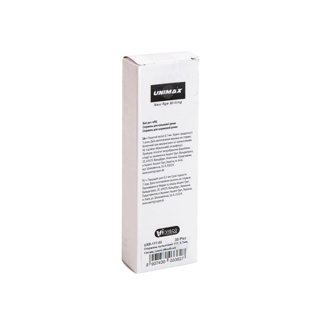 Ручкой, которая идеально лежит в руке и дарит приятные ощущения во время письма, можно пользоваться бесконечно долго, просто меняя стержни. Стержень шариковый UXB-117 с пишущим узлом премиум класса и инновационным чернилами Visco Fluid Ink, которые обеспечивают супермягкий письмо, дают яркие и насыщенные линии даже при легком скольжении без усилий. Масляное чернила шарикового стержня имеет повышенную вязкость, благодаря чему намечены линии выходят аккуратными, письмо - невероятно гладким, а длина письма - намного больше по сравнению с обычным масляным чернилами. Пишущий узел 0,7 мм, длина письма 2000 м. Длина стержня 134 мм. Подходит к ручке Maxflow, Maxflow-2. Цвет чернил: синий.