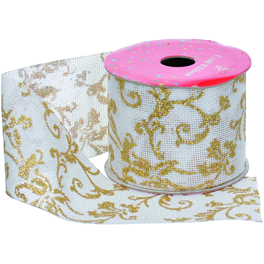 Стрічка на ялинку Jumi джутова 6,3 см x 2,7 м, біла з золотим візерунком (5900410318816)