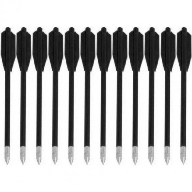 Особенностью этих стрел является пластиковый хвостик, а также пластиковые оперения, количество стрел в комплекте: 12 штук.