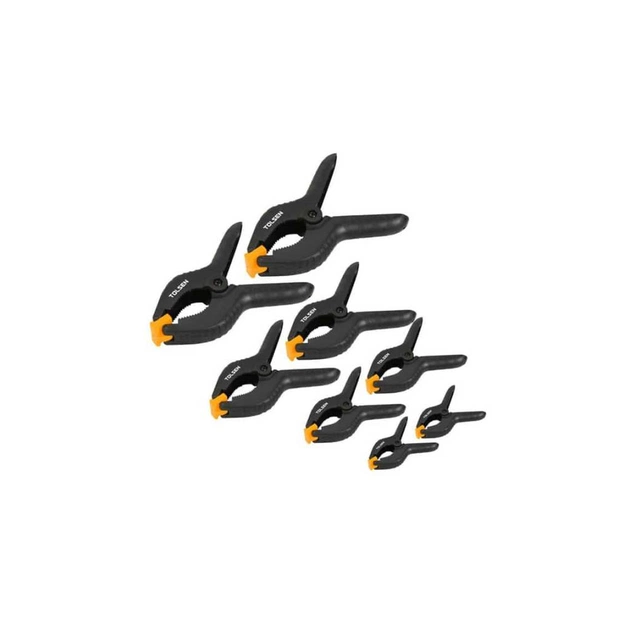 Практичный набор пружинных струбцин Tolsen — отличное решение для фиксации деталей при склеивании, пайке, сверлении, покраске и других работах. Струбцины изготовлены из прочного ударостойкого пластика, оснащены мощной пружиной и рифлеными зажимами для надёжного удержания заготовок.