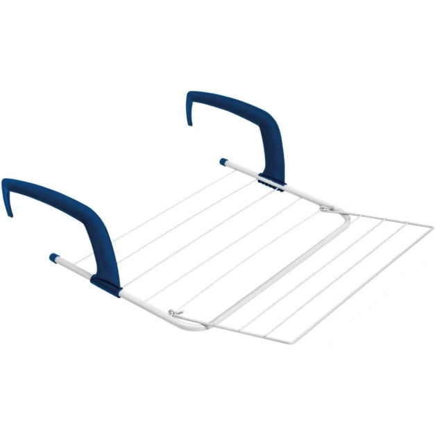Эта сушилка предназначена для быстрой сушки небольшого количества вещей около радиатора отопления или на балконе у окна. Два широких пластиковых крюка перемещаются вдоль направляющих, позволяя установить желаемый вынос сушилки от поверхности батареи, окна или стены.