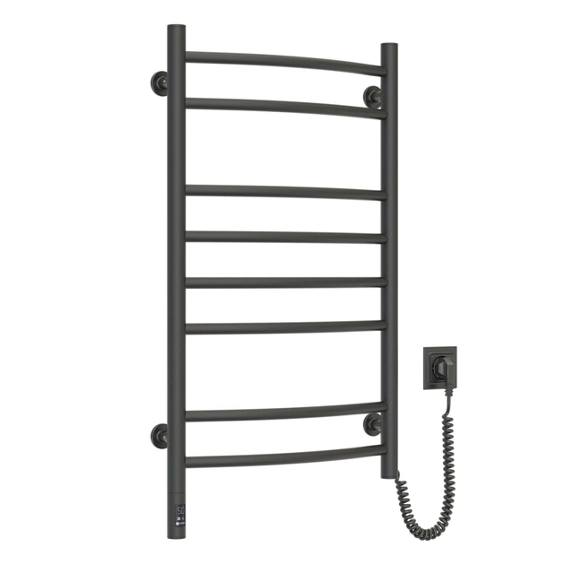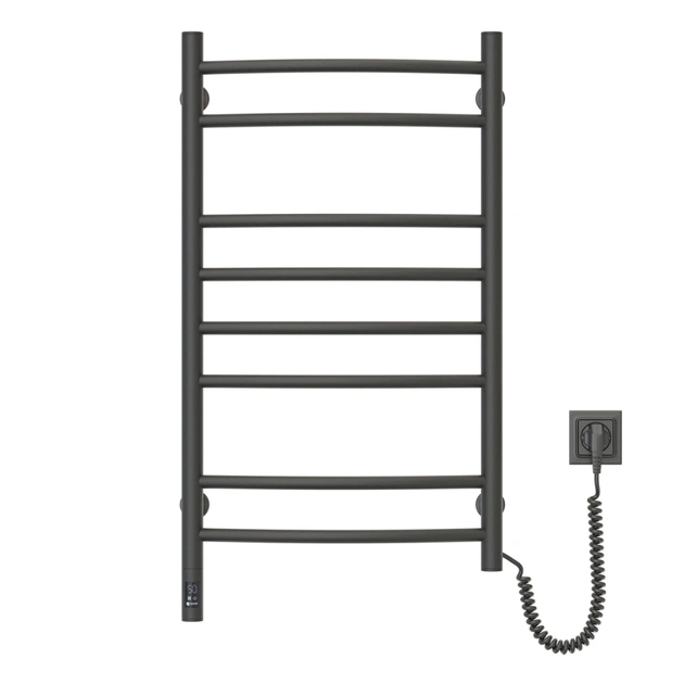 Электрический полотенцесушитель Камелия 480х800 сенсор с таймером, цвет — черный муар, от украинского производителя NAVIN, изготовлен из углеродистой стали, которая отличается высоким качеством и прочностью. Модель имеет порошковое покрытие. Толщина стенки перемычек полотенцесушителя составляет 1,5 мм, а стоек — 2 мм.