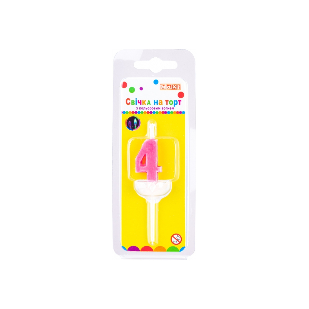 Свічка Maxi двостороння "4" з кольоровим вогнем, розмір 20*8*40 мм (MX622093-4)