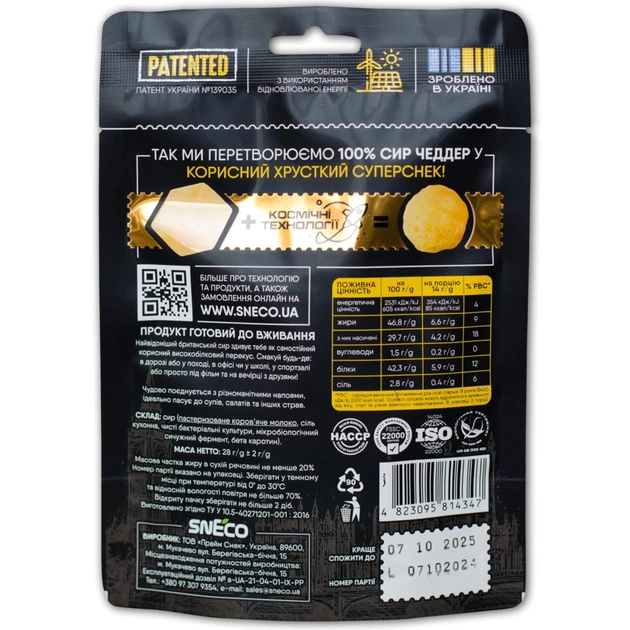 Сыр сушеный snEco Чеддер 28 г (4823095000023) - уменьшенное изображение 1