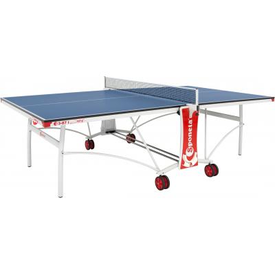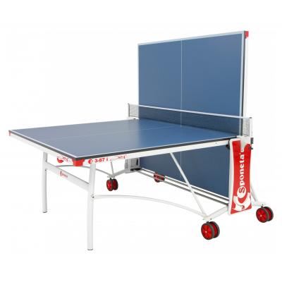 Sponeta s3-87i – универсальный теннисный стол для помещений. Может использоваться как новичками, так и профессионалами, в учебных заведениях, санаториях, залах, на даче и даже дома. Поставляется со встроенной сеткой. Имеет двойные транспортировочные ролики диаметром 128 миллиметров. Выполнен из высококачественных материалов, за основу стола был взять профиль из высокопрочного метала.