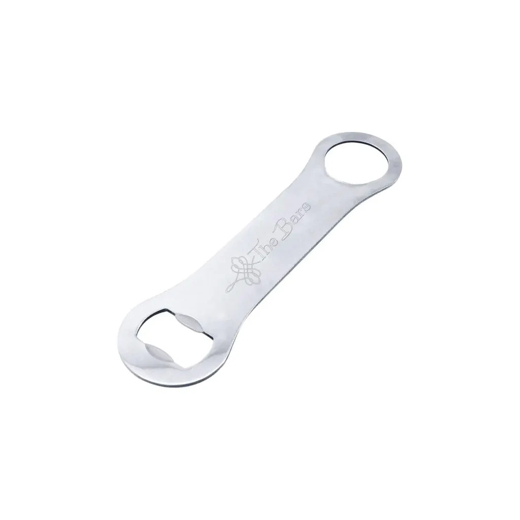 Открывалка для бутылок The Bars – это профессиональный аксессуар бармена, применяемый для откупорки бутылок. Имеет 2 гнезда для открывания и изготовлена из нержавеющей стали 18/10, которой свойственна стойкость к процессам коррозии.