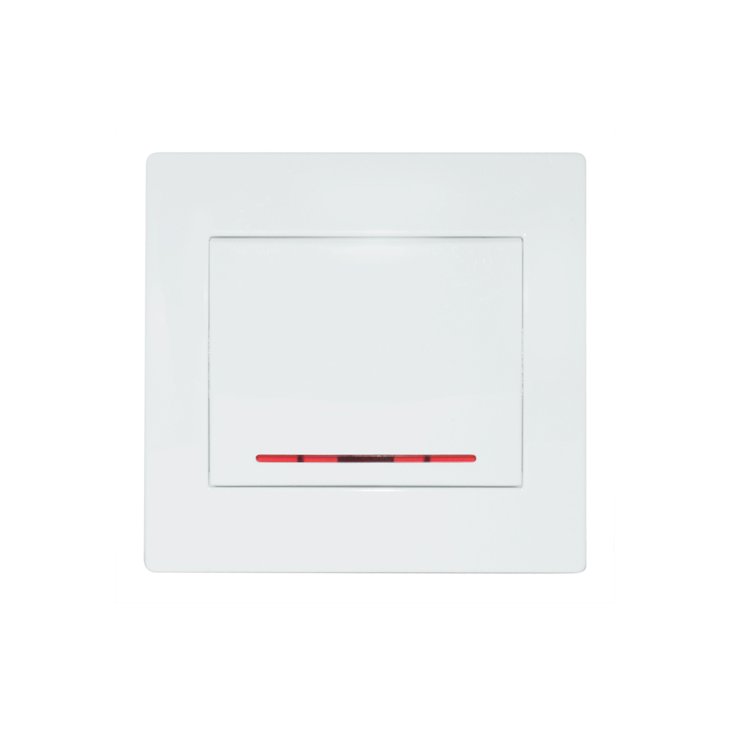 Выключатель одинарный с индикатором SE-101L серии Home имеет величину максимально допустимого тока нагрузки 10А. Материал корпуса – негорючий PC-пластик, основание - из оцинкованной стали, а медные контакты имеют серебряное покрытие.