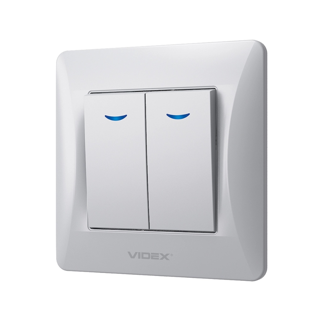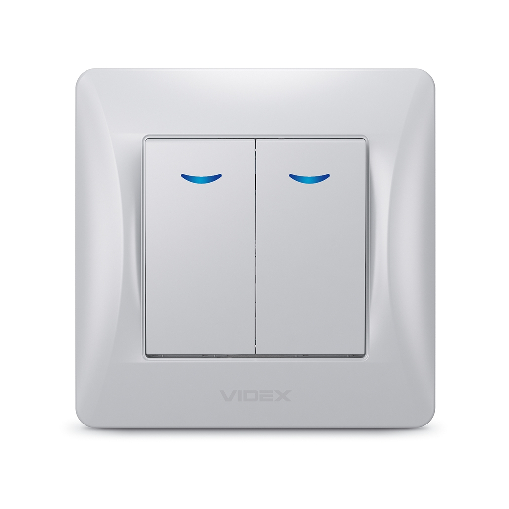 Вимикач Videx BINERA 2кл з підсвічуванням срібний (VF-BNSW2L-SS)