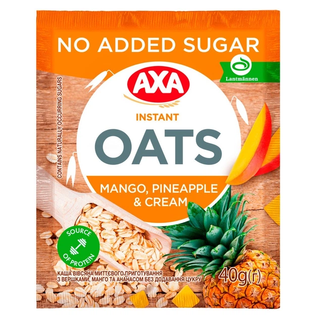 Їжа швидкого приготування АХА Каша Вівсяна з вершками, манго та ананасом без цукру 40 г (4820237692047)