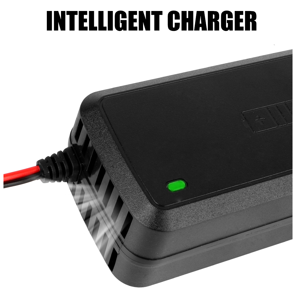 Интеллектуальная регулировка тока и напряжения, автоматическая остановка входного тока после полной зарядки. 3-ступенчатая зарядка: зарядка постоянным током, зарядка постоянным напряжением, плавающая зарядка. Трансформатор из чистой меди, стабильный выход, высокий коэффициент преобразования, энергосбережение, большая емкость. Защита от перезарядки, защита от короткого замыкания, защита от обратного подключения. Оболочка изготовлена из огнезащитного материала ABS, изоляция, огнезащита, высокая температура. Подходит для 12В, от 2А до 100А, свинцово-кислотных, AGM или GEL аккумуляторов. Универсален для большинства типов автомобильных и мотоциклетных аккумуляторов, свинцово-кислотных, AGM, гелевых, VRLA.