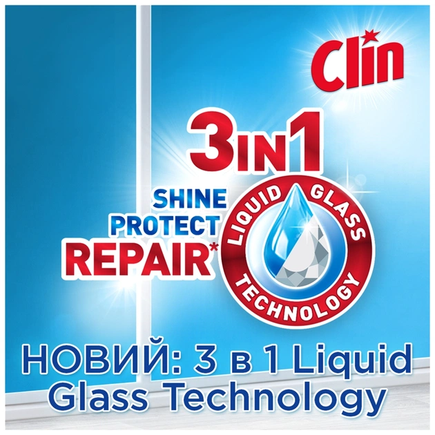 Блеск, что длится в 5 раз дольше! Формула Clin содержит в своем составе специальный водоотталкивающий полимер, который создает защитный слой на поверхности. Благодаря ему вода быстро стекает, не оставляя капель и грязи. Поэтому окна остаются чистыми и блестящими в 5 раз дольше!