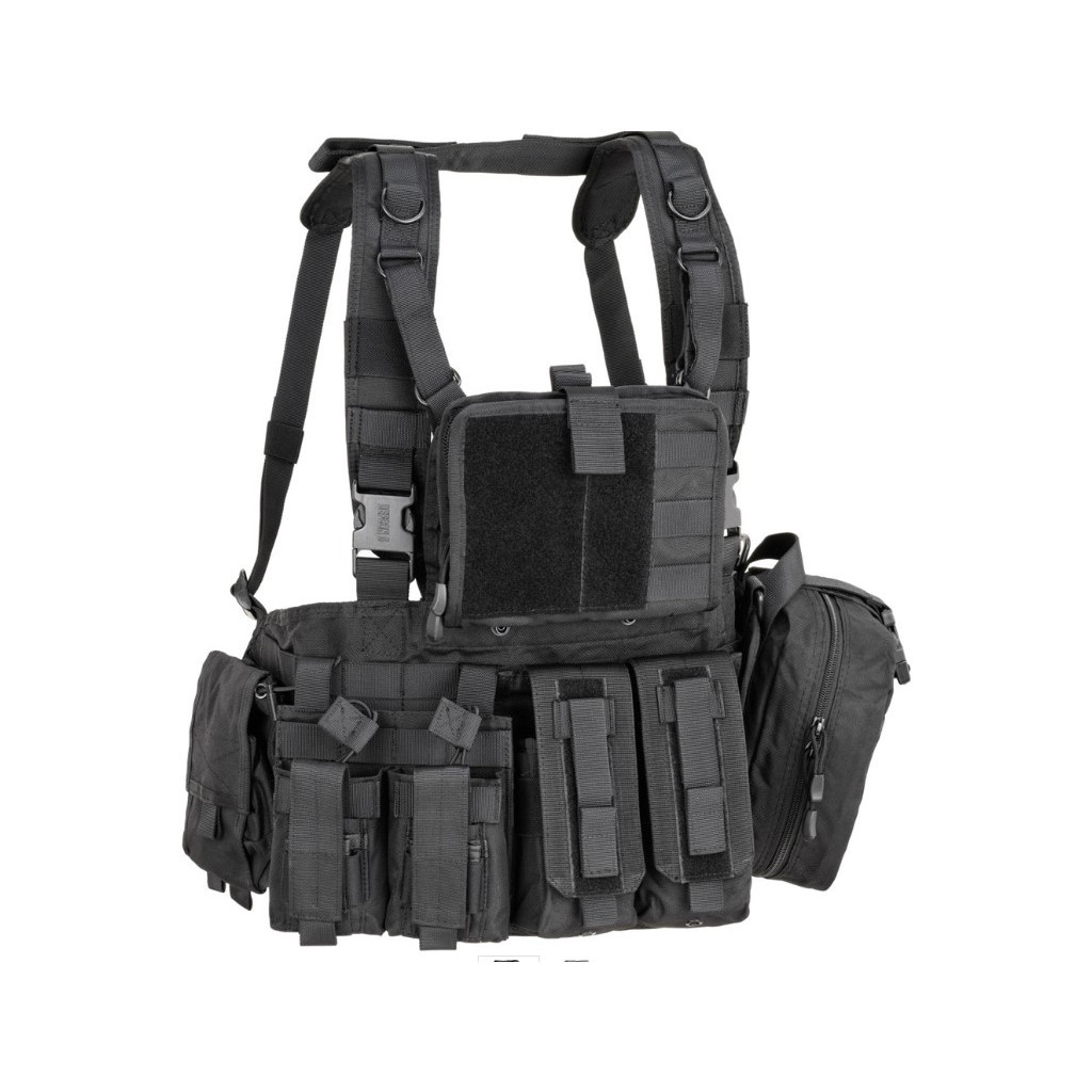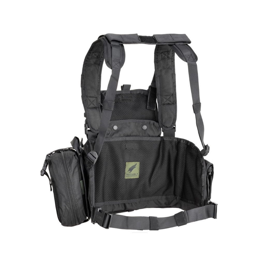 Defcon 5 Multirole Recon Chest Rig — разгрузочный ремень с карманом на фронтальной части для размещения баллистической пластины. Модель изготовлена из высококачественного полиэстера плотностью 900D. Все швы усилены для обеспечения максимальной прочности в моменты высокой активности. Плечевые лямки можно использовать двумя способами: перекрестить на спине для тех, кто работает на транспортном средстве, либо надеть на плечи, чтобы спина оставалась свободной для ношения рюкзака. Регулировать размер в области торса можно в трех местах: поясничный ремень с двойной пряжкой-фастексом, ремень на липучке для регулировки плеч и две задние лямки с пряжками. Жилет Multirole Recon рассчитан на 6 магазинов для патронов кал. 5,56x45 мм NATO , включая 2 быстросъемных и два коротких магазина для 9-мм патронов. Также предусмотрены съемные медицинский и грузовой подсумки для немедленного использования в экстренных ситуациях и «административный» карман для карты.
