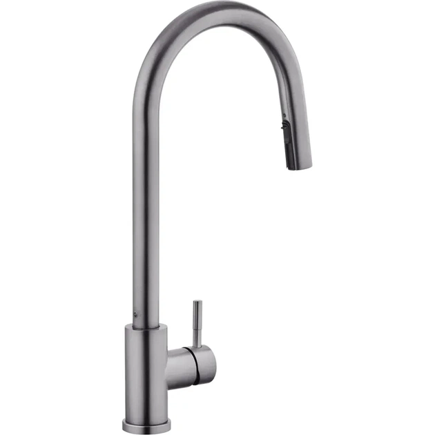 Смеситель для кухни с выдвижным изливом Kroner KRP Edelstahl Klassisch – PVD03915 – это изысканное изделие из нержавеющей стали, сочетающее в себе эстетику и функциональность. Прекрасно подойдет для современных кухонь. Благодаря однорычажному управлению и врезному способу монтажа он легко интегрируется в ваше пространство. Брошеная поверхность и U-образная форма излива придают ему элегантный вид. Смеситель оснащен выдвижным/поворотным изливом, что обеспечивает удобство использования. Механизм смешивания с картриджем диаметром 35 мм гарантирует надежность и долговечность. В комплектацию входят гибкая подводка, шланг для выдвижной воронки, воронка, якорь и крепеж, что делает процесс установки простым и удобным. Этот смеситель отвечает высоким стандартам удобства и стиля на современной кухне.