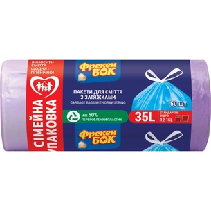 Пакети для сміття Фрекен БОК Стандарт із затяжкою Фіолетові 35 л 50 шт. (4823071631029)