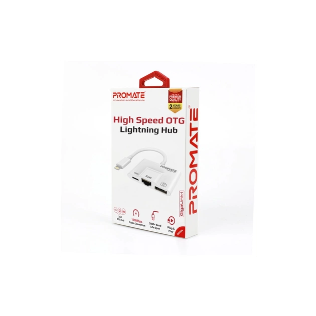 Адаптер Lightning to RJ45 Ethernet + USB 3.0 OTG + Lightning Promate (gigalink-i.white)