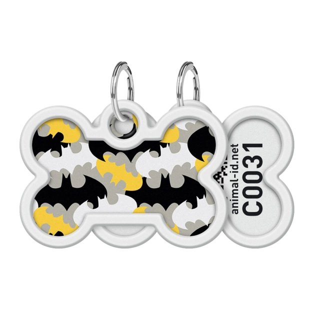 Адресник для тварин WAUDOG Smart ID з QR паспортом "Бетмен візерунок", кістка 40х28 мм (0640-1020)