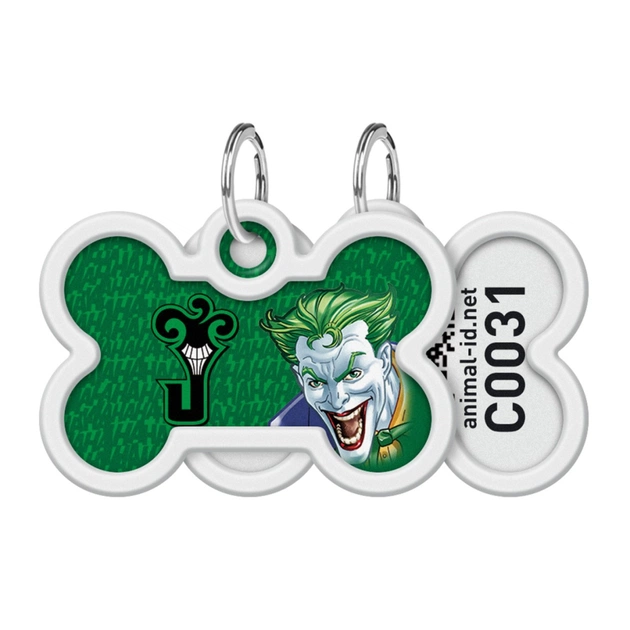 Адресник для тварин WAUDOG Smart ID з QR паспортом "Джокер зелений", кістка 40х28 мм (0640-1005)