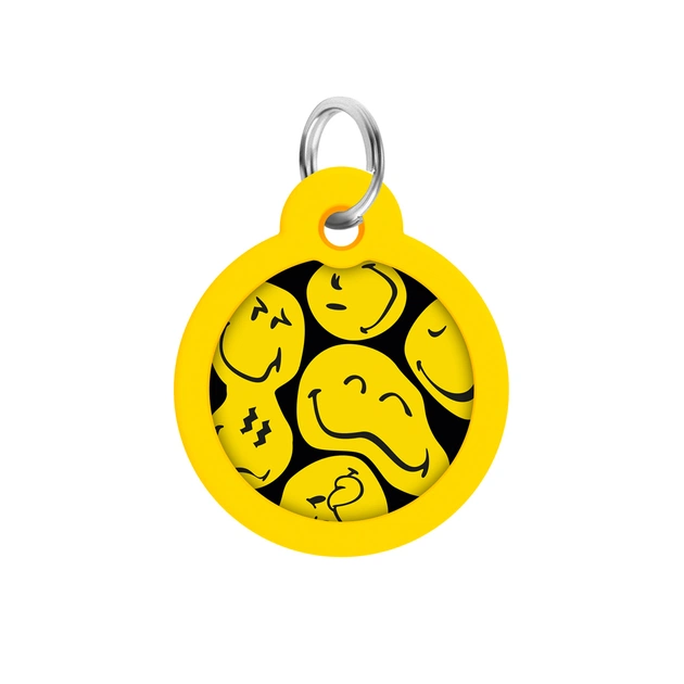 Адресник для тварин WAUDOG Smart ID з QR паспортом "Смайли на чорному", коло 30 мм (230-0181)