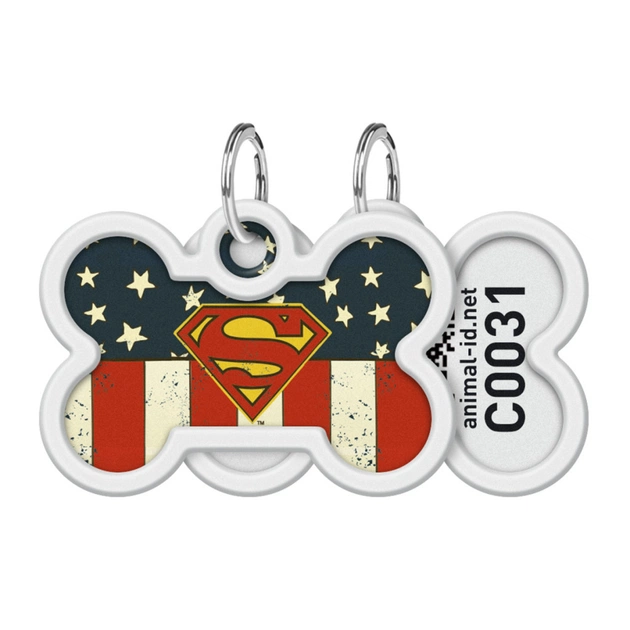 Адресник для тварин WAUDOG Smart ID з QR паспортом "Супермен Америка" кістка 40х28 мм (0640-1010)