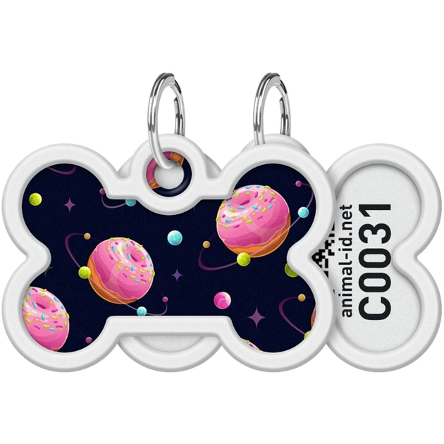 Адресник для тварин WAUDOG Smart ID з QR паспортом "Всесвіт пончиків", кістка 40х28 мм (0640-0218)
