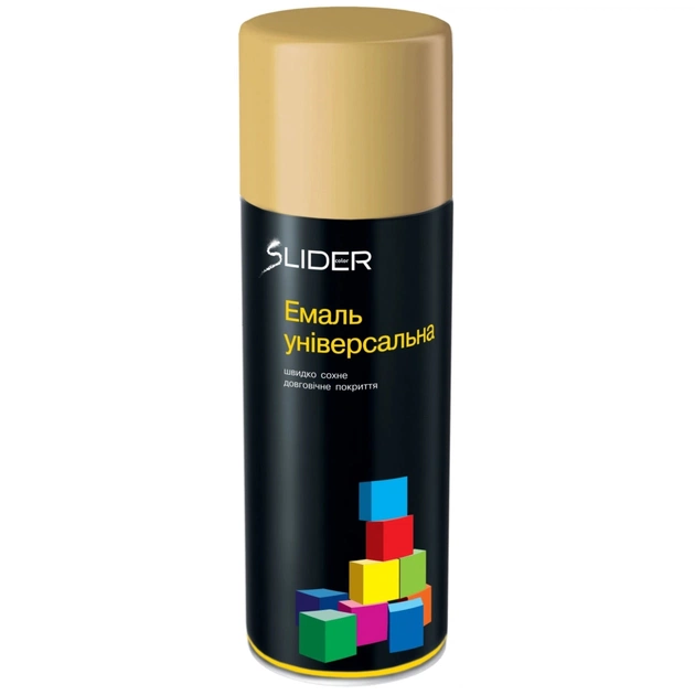 Емаль SLIDER універсальна - універсальна швидковисихаюча аерозольна емаль SLIDER - підходить для фарбування пластикових, дерев'яних та металевих основ. Має стійкість до вицвітання і втрати кольору. Велика палітра кольорів сприяє більш легкому вибору.