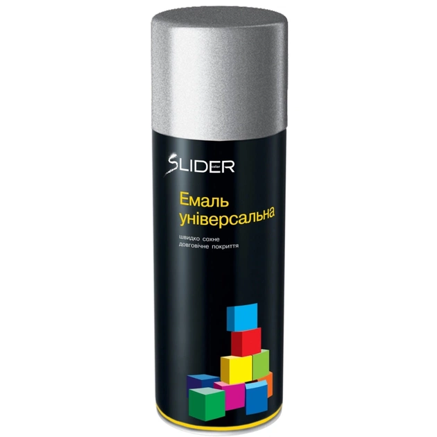 Емаль SLIDER універсальна - універсальна швидковисихаюча аерозольна емаль SLIDER - підходить для фарбування пластикових, дерев'яних та металевих основ. Має стійкість до вицвітання і втрати кольору. Велика палітра кольорів сприяє більш легкому вибору.