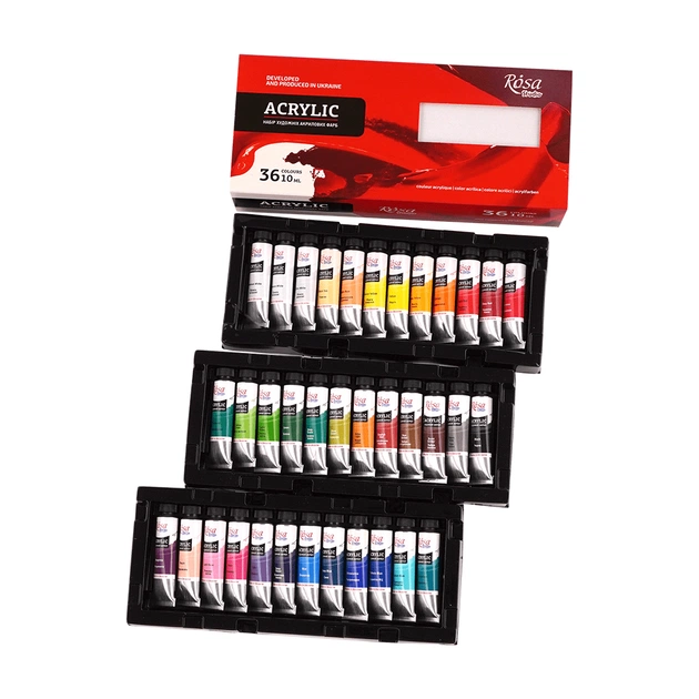 Акрилові фарби мають високу міцність і еластичність. Вони також можуть служити основою для роботи в інших видах технік.Характеристики художнього акрилу ROSA Studio: - Насичені кольори, які легко змішуються і утворюють нові відтінки. - Фарби мають гарну покривну здатність. - Завдяки оптимальній в'язкості фарби, у роботі можна використовувати різноманітні інструменти (пензлі, мастихіни тощо) - Легкий блиск після висихання додає акрилу своєрідного шарму .
