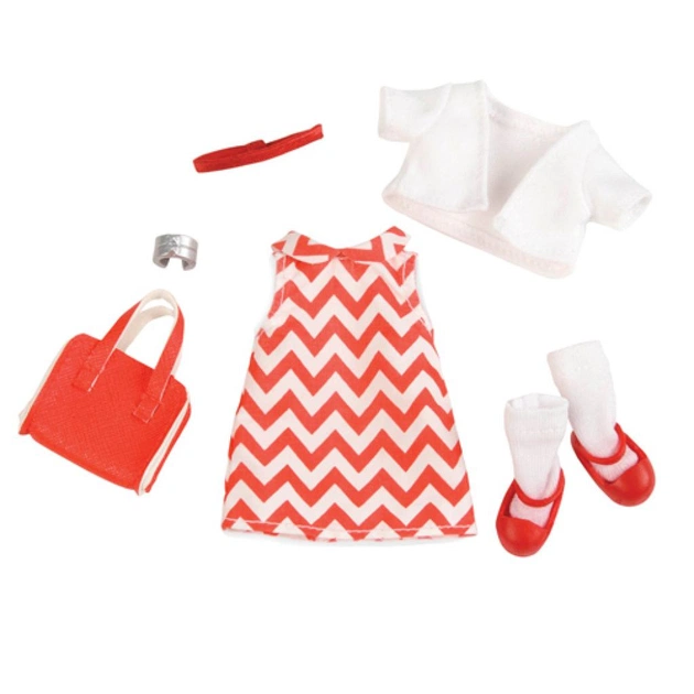 Стриманий та елегантний образ у стилі ретро – набір одягу для ляльок LORI 15 см. У комплекті: витончена червона сукня зі смужками, накидка, шкарпетки, взуття. Окрім одягу у набір входять аксесуари, що доповнюють образ: пов’язка на голову, сумочка та браслет. Усі речі виготовлені із якісного текстилю і пластмаси, та є абсолютно безпечними для дітлахів. Набір сумісний з будь-якою лялькою LORI 15см, та чудово доповнить вашу колекцію. Розмір упаковки: 22 х 12 х 4 см. Рекомендований вік: 3+.