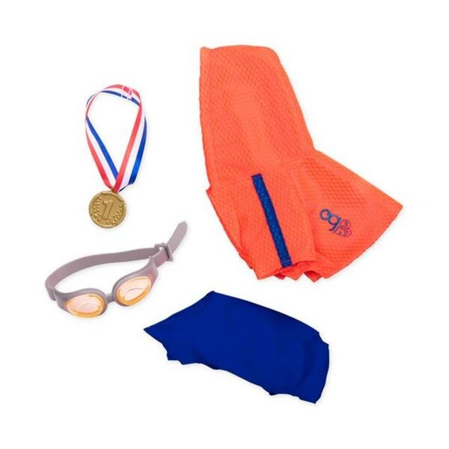 Домашні улюбленці звикли всюди супроводжувати своїх господарів, навіть під час занять спортом. Тож, для прогулянки в басейн песику також потрібно виглядати стильно та відповідно до ситуації. В набір аксесуарів для іграшкового песика входять чотири предмети: шорти та окуляри для плавання, рушник, нагорода. За допомогою даного набору малюк зможе перетворити іграшкового песика на справжнього героя спортивної олімпіади. А також розвинути сюжетно-рольову гру та фантазію.