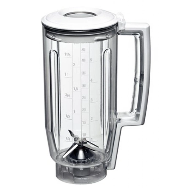 Особливості: -для серії кухонних машин MUM5; -корисний об'єм: 1.25 літр; -чаша-міксер зі шкалою; -кришка з лійкою; -підходить для колки льоду.