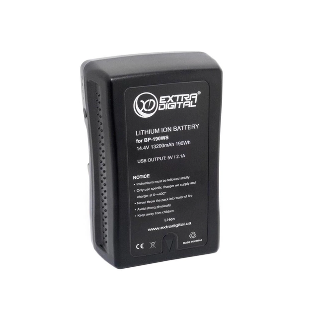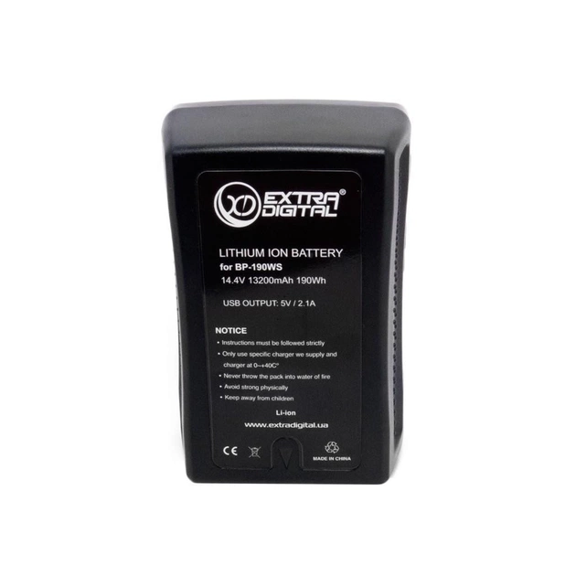 Акумулятор до фото / відео EXTRADIGITAL Sony BP-190WS, Li-ion, 14.8V, 13200 mAh (BDS2695) - літій-іонний джерело енергії. Він призначений замінити що вийшов з ладу "рідний" акумулятор або стати надійним резервом для збільшення часу автономної роботи камери.