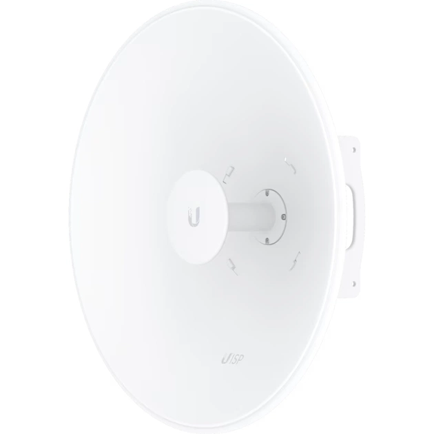 Ubiquiti UISP Dish (UISP-Dish) - антена з високим коефіцієнтом посилення, призначена для побудови мостів у режимі Точка-Точка та забезпечує достатнє покриття за рахунок широкого діапазону робочих частот (5,15-6,875 ГГц). Завдяки хвилеводному адаптеру, що йде в комплекті, пристрій легко підключається до airFiber 5X HD або Rocket 5AC PRISM Gen2 для зручного і надійного з'єднання. З боків антени також є засувки для безпечного приєднання радіопристрою.