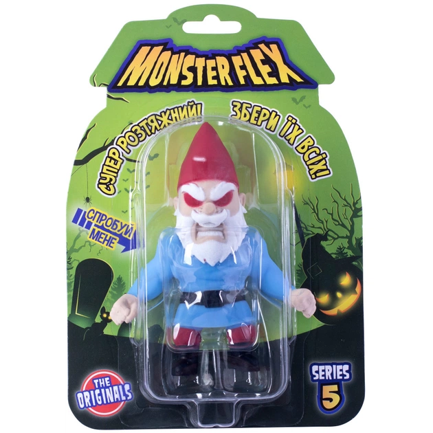 Занурся у світ монстрів разом із фігурками ТМ Monster Flex! Це забавні фігурки, які тягнуться, у вигляді найрізноманітніших жахливих монстриків, які сподобаються і хлопчикам, і дівчаткам. Їх можна скручувати та тягнути, щоб отримати іншу форму. Вони легко повертають собі колишній вигляд. Іграшка-тягучка Monster Flex Злий Гном – це антистрес, виготовлений із екологічно чистої термопластичної гуми. Завдяки своєрідній формі, текстурі та спеціальному матеріалу фігурку можна м'яти, стискати, зв'язувати у вузол, робити різні трюки та все, що дозволить фантазія.