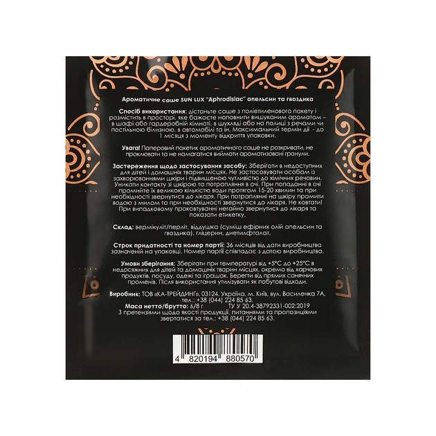 Майстри бренда Sun Lux спеціалізуються на створенні якісних ароматичних композицій із гарною стійкістю. У їхньому асортименті є кілька чудових ароматичних саше, які допоможуть наповнити простір чудовим ароматом на тривалий термін. Серед запропонованих композицій ви неодмінно знайдете те, що підійде саме вам і дасть змогу насолодитися приємними пахощами.