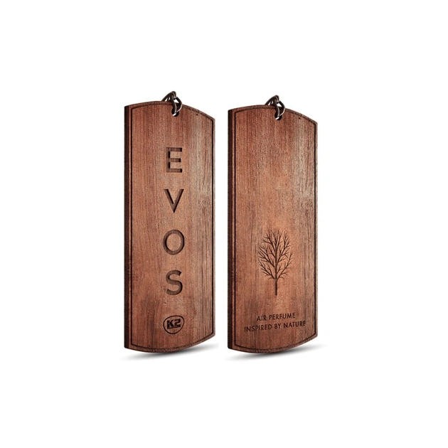 K2 Evos — незвичайний автомобільний освіжувач повітря у формі дерев'яної підвіски, натхненний природою. Унікальна форма легендарної жетонки прикрашає салон автомобіля і надає йому елегантності. Це поєднання контрастних нот аромату лайма і мускусу, в них ви впізнаєте людину з неординарним характером, а також в ароматі водяних квітів, що демонструє тонкість його натури. Дозвольте хвилям освіження віднести вас у незабутню подорож до воріт запашної Вальгалли.